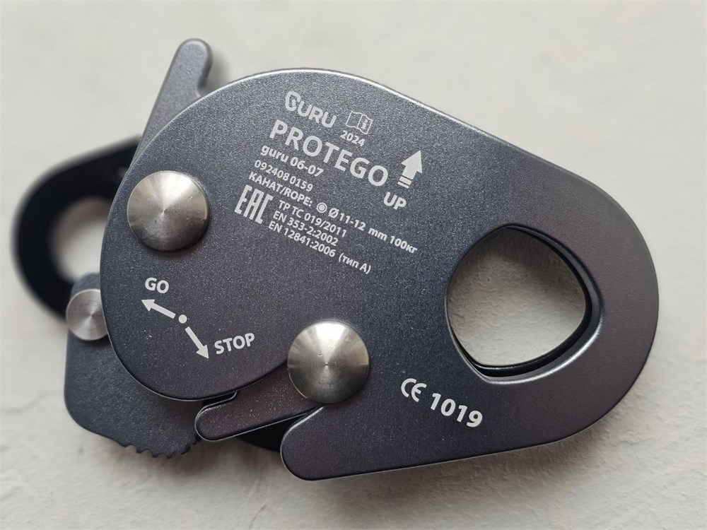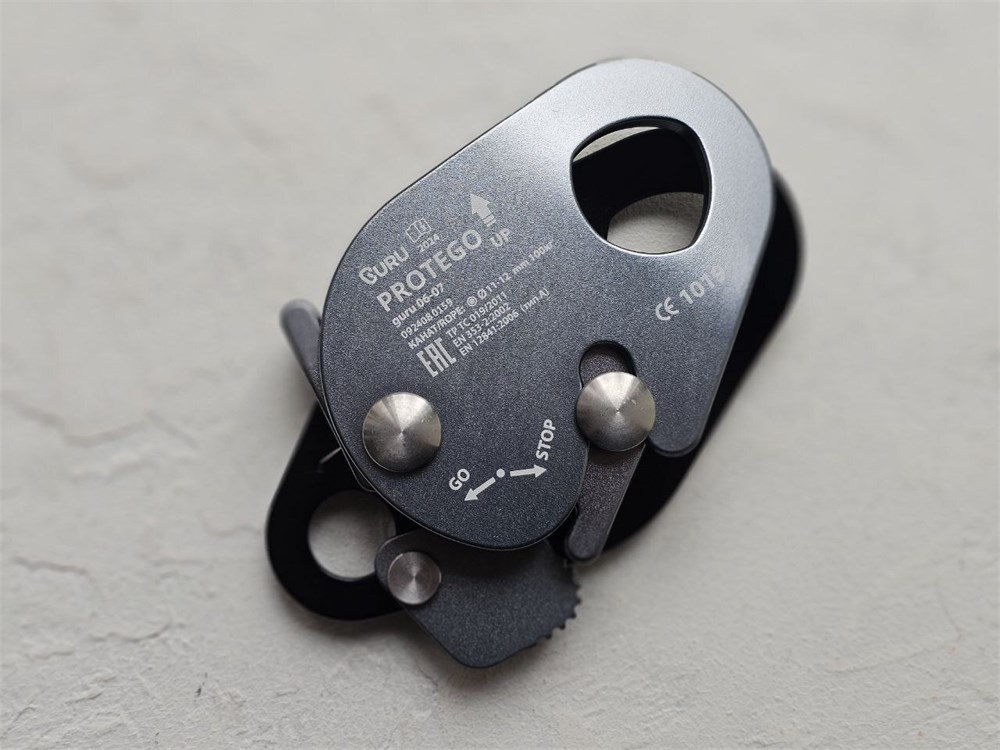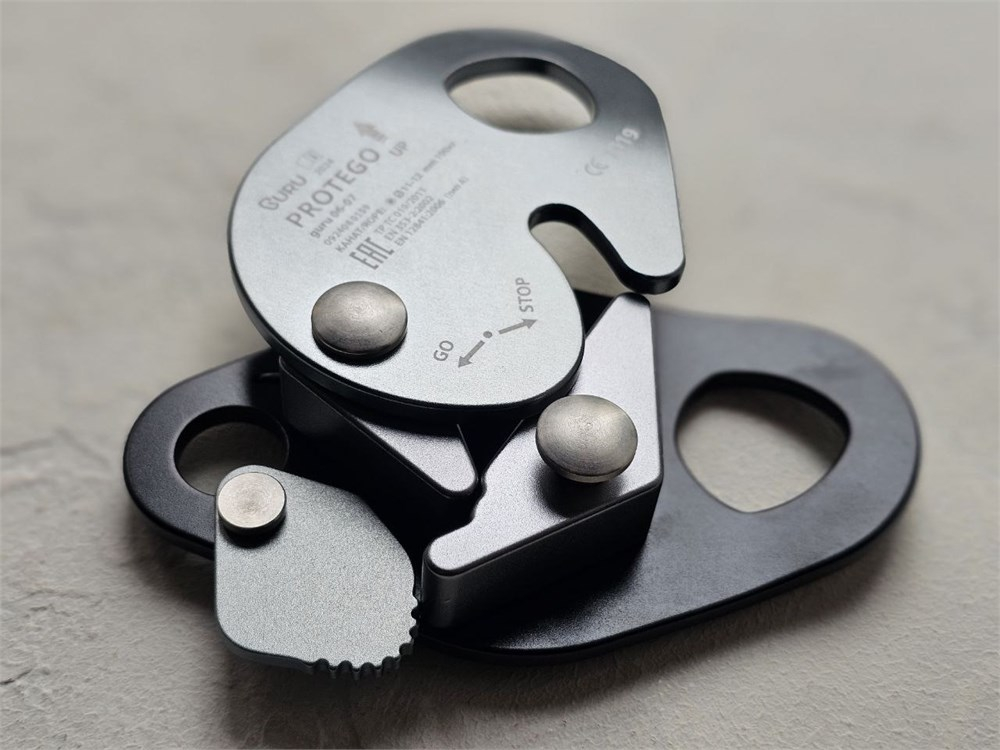 Зажим GURU PROTEGO предназначен для подъёма по веревке пользователей весом до 100 кг (вместе со снаряжением и инструментами).